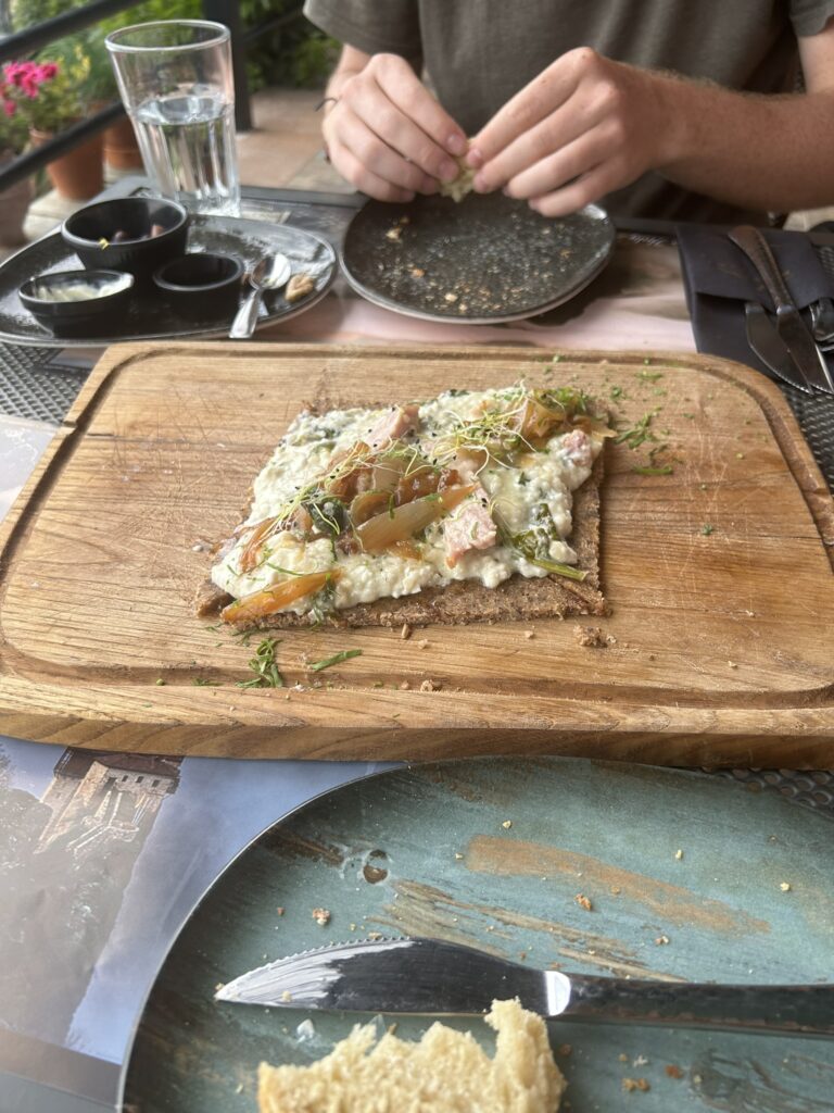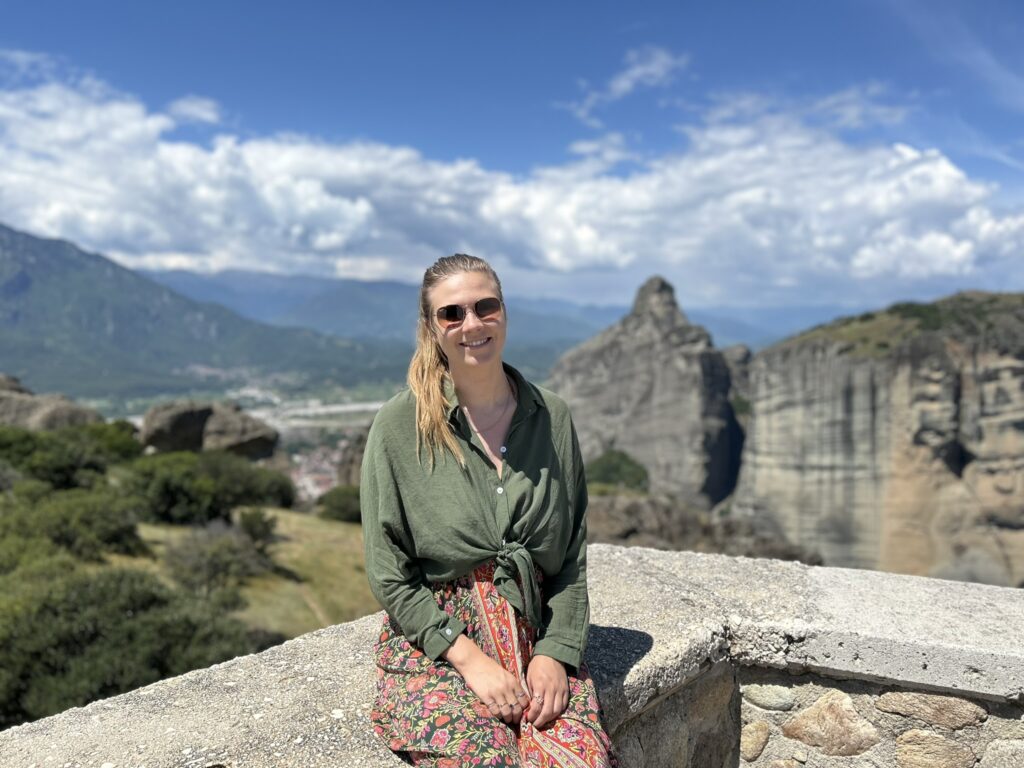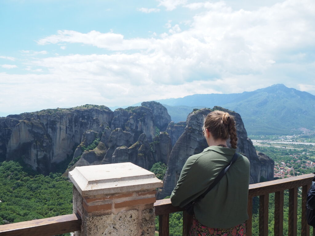 But the day wasn’t over yet! We had lunch in Kalabaka, and this was a top five meal of our entire trip. There was some bread with a lovely basil and yogurt dip to start. Then a traditional Greek pasta (which isn’t pasta as far as we could tell), with all sort of delicious ham and apricot and cheese and what not on a linseed bread. The mains were a chicken souvlaki skewer and moussaka. Both of which were great. The Mousakka had a slightly different flavour than we were expecting. We think there was allspice added, but we could be wrong.