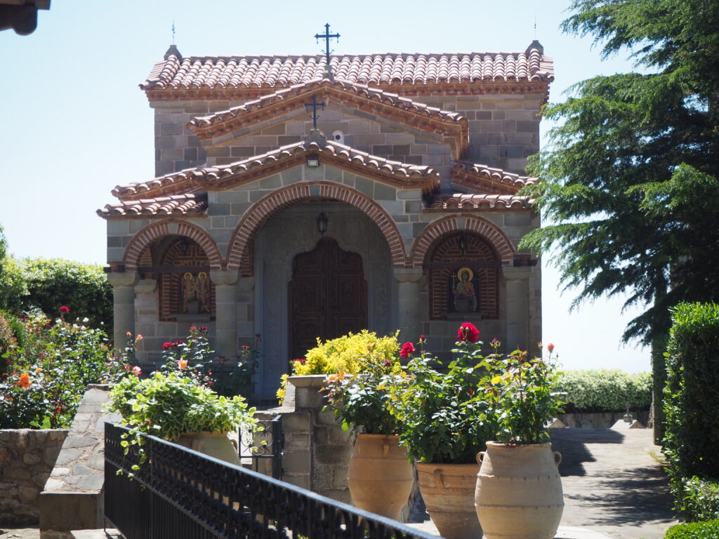 One more monastery, which was that of Varlaam. This one was larger, and required some stairs that were cut into the rock to go up. Again, the interior and courtyard were beautifully well kept, and slightly modernized. Many historical relics still exist at this monastery though. I assume they are replica’s. There was an old water storage barrel that we saw, and the net and pulley system. The views and flowers were again really lovely.