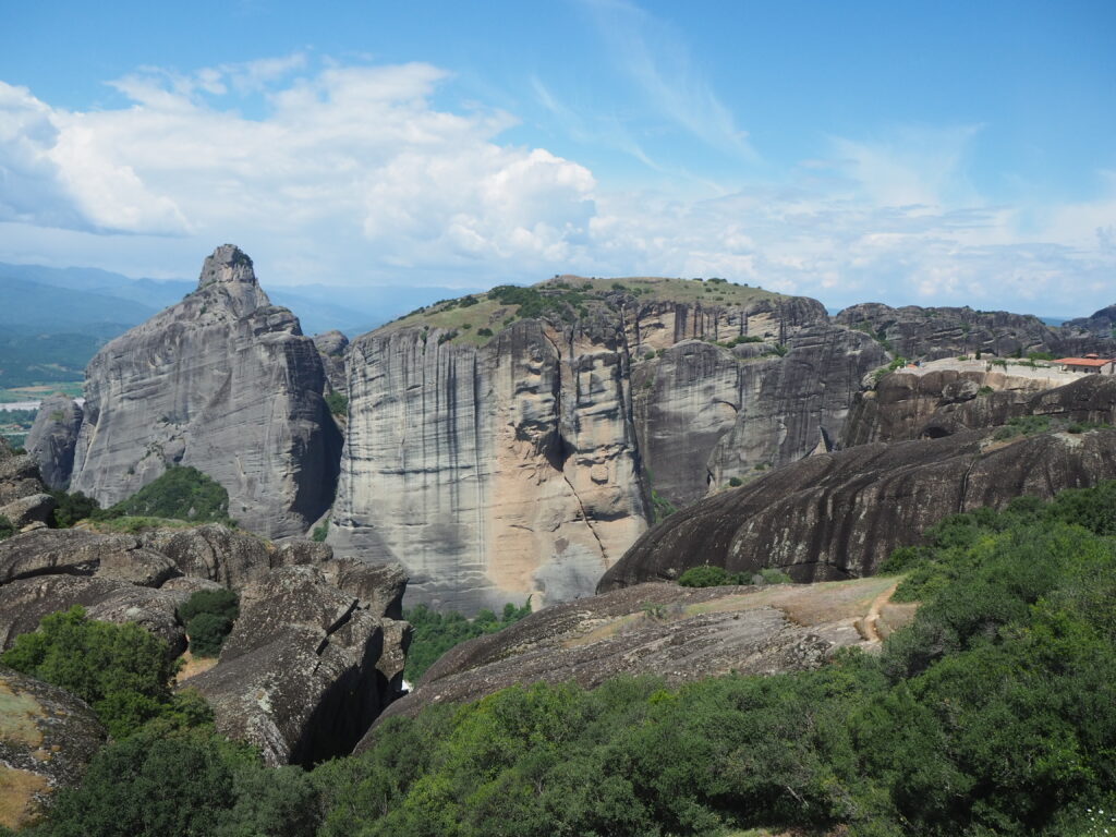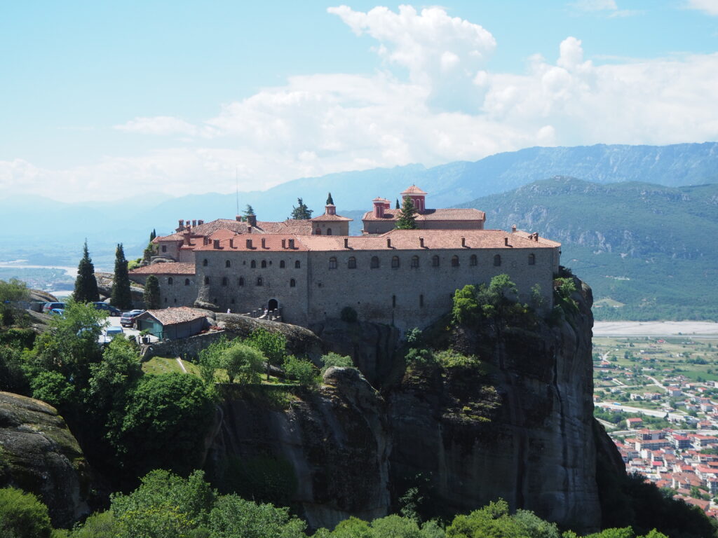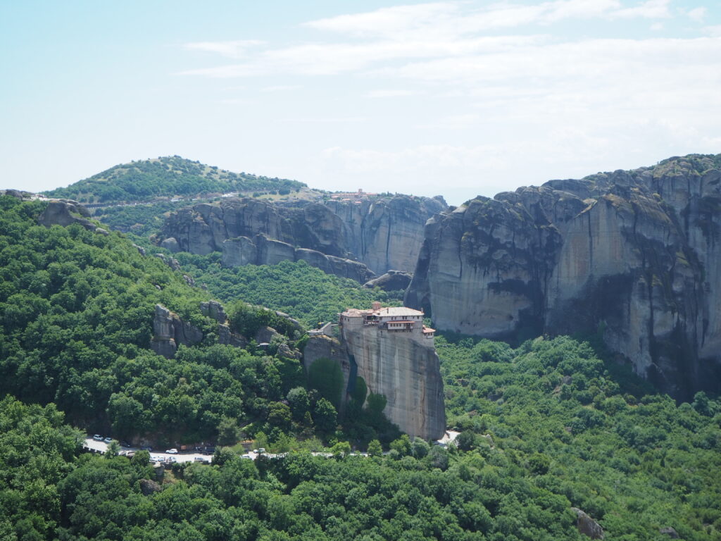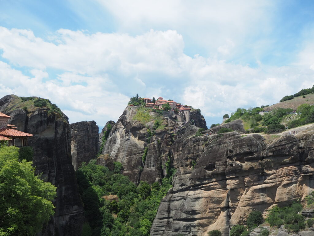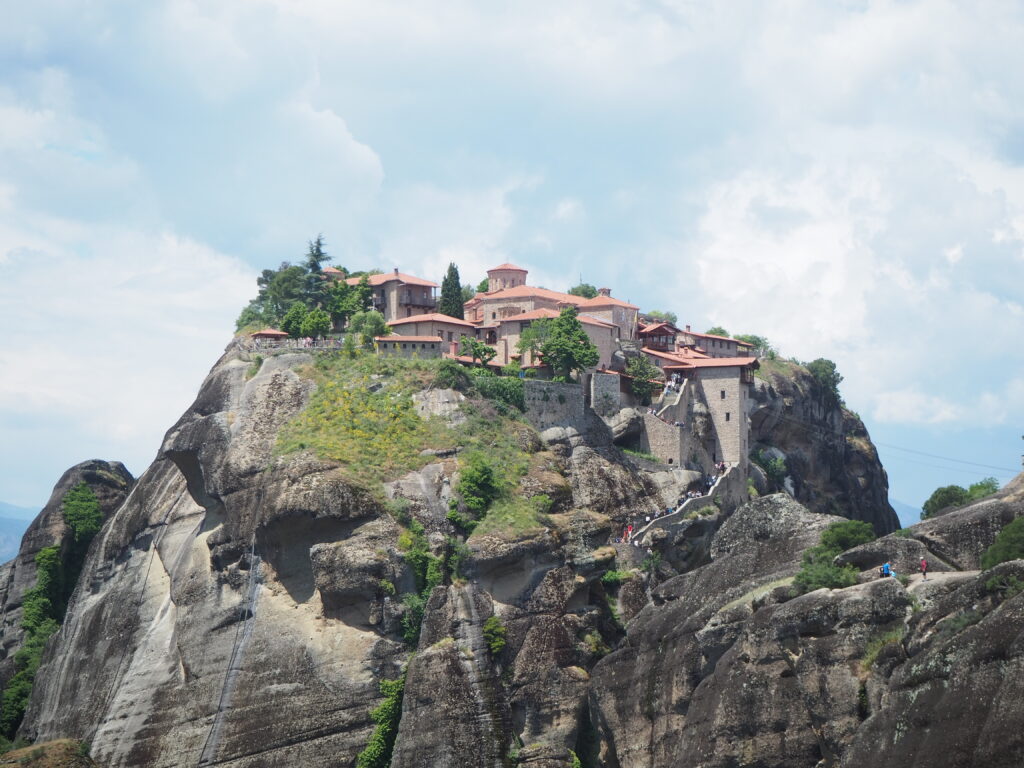 The Meteroa historic site is a collection of 24 still standing Eastern Orthodox monasteries that were built on the tops of steep cliff faces, located just outside the town of Kalabaka. They were first built by hermit monks who just wanted some peace from 12th century local political turmoil, and then became more populated as the monks wanted to escape persecution by the invading Muslim Ottomans in the 14th and 15th centuries. Today, six are they are still in practice, but have their days interrupted by thousands of tourists daily.